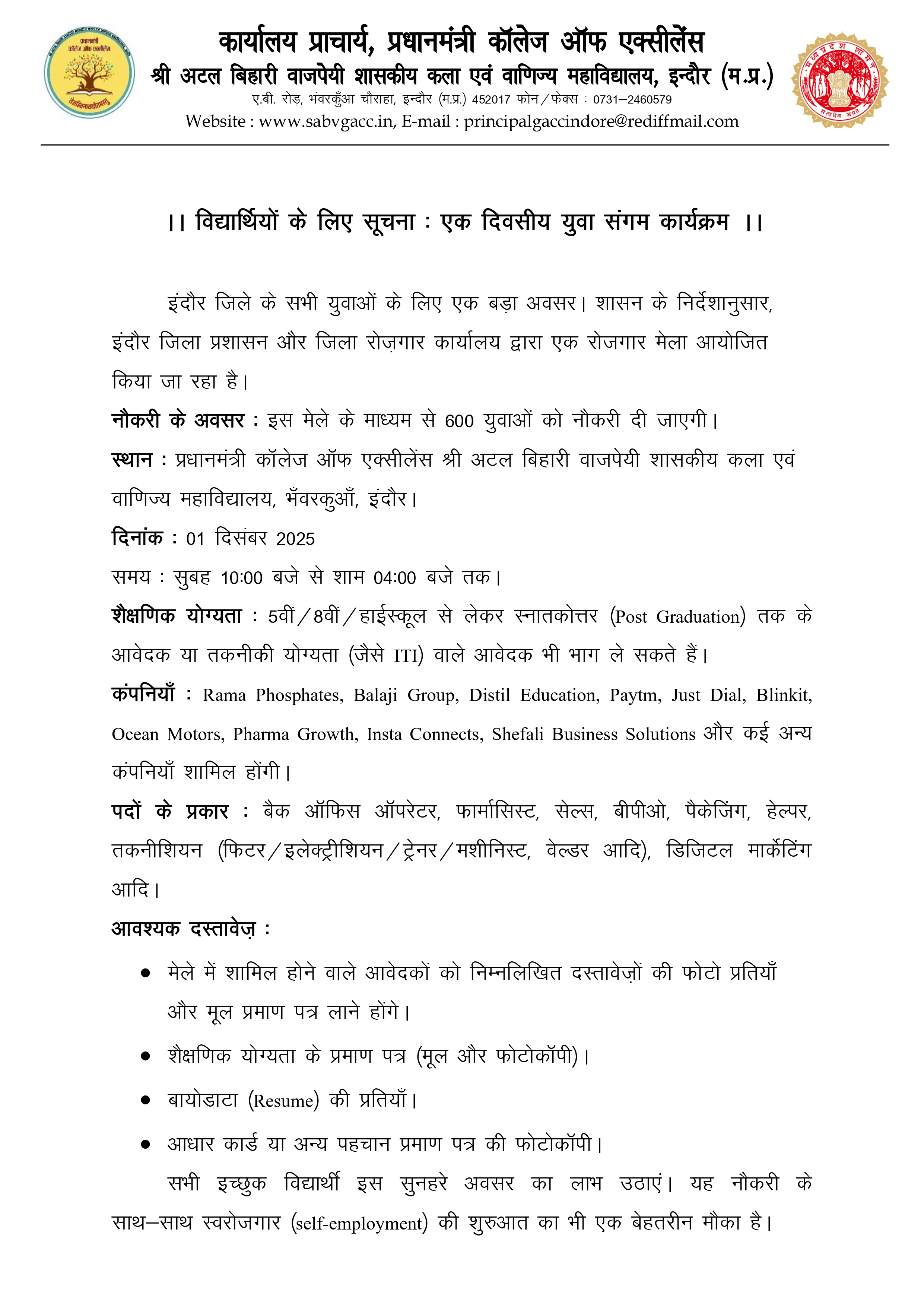 © 2022 Sri Atal Bihari Vajpayee Govt. Arts & Commerce College, Indore. All Rights Reserved